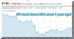 When Meg Whitman was named new CEO the last August, we said that she "will probably need to jump through some incredibly high hoops in order to regain Wall Street's confidence. She failed to do that in the political arena three years ago (left) as had another former HP CEO, Carly Fiorina. Well, that's one thing the two ladies have in common." FAILURE. In other words, it would have taken a miracle to turn HP around that fast. Well, miracles did not happen. And the latest results show it. Last year, HP suffered the humiliation of having Apple surpass it as the world's largest computer company. In 2012, with Apple growing through the roof and HP shrinking, the gap between the two is widening. But the numbers merely mirror the big picture changes that are taking place. Apple is a company that has been able to reinvent itself over and over again. Big Blue is another company that has shown such ability over an even longer period of time (Apple is 36 years old, IBM is 101). HP, on the other hand, has the feet of clay. It is still stuck on the past... the PC era, the printing hardware, the decaying server product lines... So the latest numbers merely reflect for all to see how the waning of the era of PCs and hardware is exposing the companies with clay feet who are still stuck in the past. We do not envy the HP shareholders anymore than we envy the Carnival Cruise lines owners. Both will have to come up with a new game plan... QUICKLY. Or sink. Which is what the HP stock did today. It dropped like a rock, down 6.5%. HP shares are down 38% since a year ago. Ouch. * * * SEGMENT HIGHLIGHTS: The company in the January quarter showed weakness across a range of geographies and product groups: