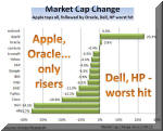 market cap is actually DOWN a li This trend also holds true in the short term. Take a look at that stock price chart on the left. Apple is the only green light in a sea of red. If take a look at
