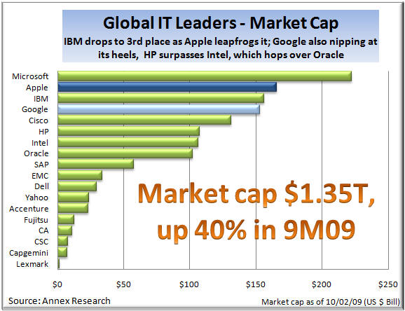 Updated 10/05/09, 9:30AM HITAnalysis of Top Global IT Companies' Market & Business PerformancesA Rally of Hope over FactTop IT Companies' Market Cap Surges by 40% Even If Their Revenues, Earnings Drop; Apple Stock Gains the Most, IBM Lags BehindHAIKU, Maui,