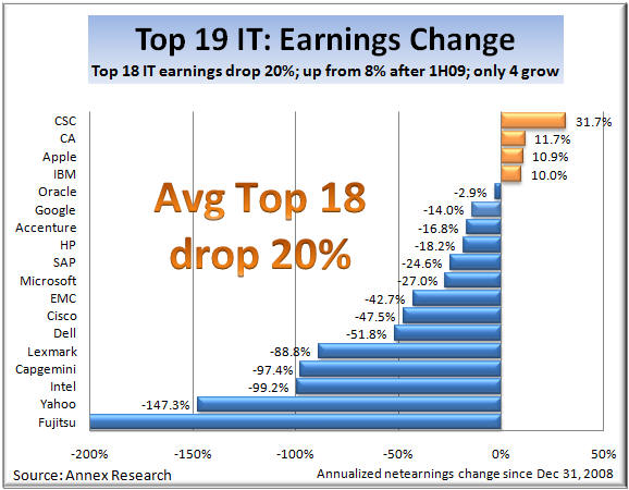 July 2009). Since Microsoft contrac Lexmark, CA and Yahoo are still holding up the rear in terms of revenues. As for earnings, despite the
