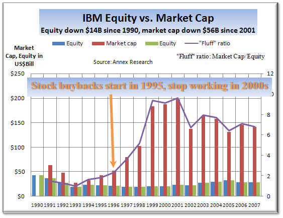 IBM's one-string instrument for propping up the stock price isn't working Maybe if the company stopped minding Wall Street opinions, and started minding its business (by investing all these billions into acquisitions instead of lining investment bankers' pockets), favorable valuations would also soon follow?