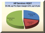 units improved year-over-year "For the full year, operating margin expanded 140 basis points to 11% of revenue, highlighting the sustained efforts of the team to reduce the cost of service delivery," Hurd praised the efficiency improvements that the HP Services leaders achieved in the last 12 months during the teleconference with analysts. Summary & Outlook Looking ahead to fiscal year 2008, HP sees no signs of its growth slowing down. The company is expecting about a 7% revenue increase to $111.5 billion, and again a twice as rapid profit improvement (up about 14%) to about $3.35 per share.