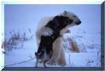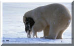 What we find especially interesting about the announcement is that it represents the blending of two entirely different business DNA. IBM's heritage is enterprise computing and mainframes. Google's is Internet computing and consumer markets. Guess both companies are betting that their hybrid, conceived in the clouds, weakens the Washington state Goliath's grip on the IT markets. Time will tell. One cannot predict innovation. So your guess is as good as ours as to whether or not this new "cloud" will end up as a mere "pie in the sky," or will turn into a new Cloud Nine. SCOTTSDALE, Oct 9 - Just got an amazing pictorial from a Canadian reader in reaction to our "an apple a day kept bears away, or at least at bay, one could say"-story. It appears than not all bears bear bad news. Take a look... ...starting with the location of the photo essay - Churchill, Manitoba; way up north, on the western shores of the Hudson Bay (left map). That's where a polar bear showed up out of the blue and scared the bejesus out of the photographer and the huskies, who immediately assumed defensive positions (middle). But the bear grunted, "I don't understand what all the fuss it about. I've come to play not bite" (right). Whereupon the bear proceeded to pat the dogs first, and then fool around with them. They soon got the message and started to lick the bear back, who, in turn, returned the favor. For a while, it was a regular love fest on ice. "Bear meets dog and they fall in love," could be the caption for the above scenes.