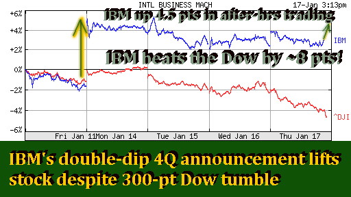 Happy bargain hunting! Bob Djurdjevic SCOTTSDALE, Jan 18 - Well, now we know the answer to the question we posed last night. Yes, IBM still matters. And yes, Big Blue can still move markets. They say, "proof's in the pudding." Take a look...