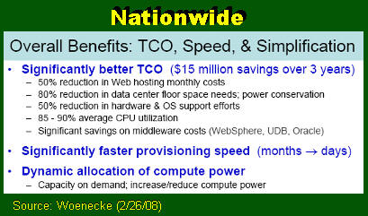 At Nationwide, that is no longer a question. "in two minutes I can now configure new servers for one of our users who wants to test some new idea," Woeckener raved. "And if the idea doesn't work out, I can remove them just as fast."