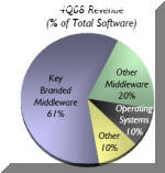 having surpassed Accenture, industry's perennia As you saw from the above chart, the Global Technology Services' (GTS, outsourcing) gross margins area now about 35%, up 4.8 points, while the Global Business Services (GBS, consulting) are about 29%, up 5.6 points. That makes IBM's aggregate services gross margins about 33%. By comparison, Accenture's gross margins are around 32%. So we'll be likely sending another "gold" medal up to Armonk when update our annual Global IT Services Octathlon results. Furthermore, the two IBM services continued to close new business as if these were times of bloom, rather than economic gloom. New bookings surged to $17.2 billion in the fourth quarter, up 11% over the year earlier total, lifting the backlog by $3 billion to $117 billion. That narrowed the gap between the backlog outflows and inflows. But IBM services backlog is still down for the year (meaning that average outflows exceeded the average inflows by $14.1 billion to $13.9 billion per quarter - see above charts). When asked by an analyst during the post-earnings release teleconference if there was an increase in "rescoping" (services contract renegotiations) due to a difficult economic conditions, the IBM CFO, Mark Loughridge, said that the rescoping was "fairly typical." Well, we don't know what yardsticks the IBM CFO considers "typical," but the outflows from the IBM backlog have definitely increased in the last three years. In 2006, they averaged $11 billion per quarter, in 2007, $12 billion, and last year they were $14 billion. And since "rescoping" is a part of that outflow, the tougher economic environment must have had a derogatory effect on it. Software.