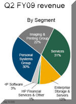 fiscal year 2009 mark Server and storage revenues plunged 28% since a year ago. Printer and supplies business declined 23%. PC sales dropped 19%. Software revenues shrank 15%. Financial services was down 6%... You'd think the wheels are coming off the computer industry's largest company.