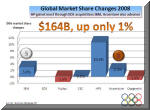 Meanwhile, the aggregate annual revenue growth of the top six was only 1% despite the HP spike caused by the EDS acquisition.  So by the time curtain dropped on 2008, HP, IBM and Accenture gained market share, while others lost.