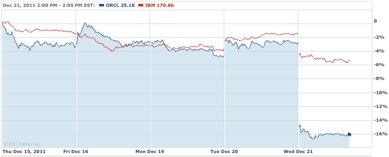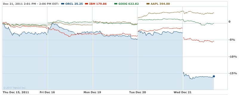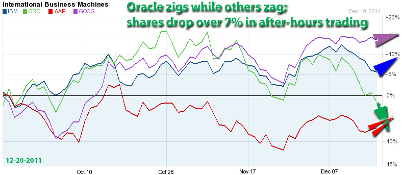 Updated 12/20/11, 3:30PM HST, adds Market UpdateAnalysis of Oracle's Latest Quarterly ResultsOracle Runs Out of OraclesStock Takes a Big Dive in After-hours TradingHAIKU, Maui, Dec 20, 2011 -