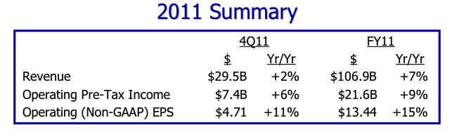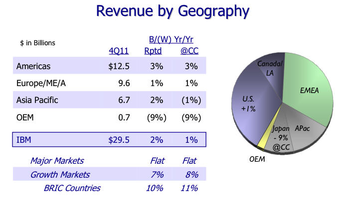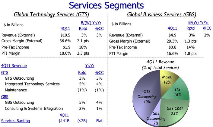 BENEFIT to IBM: Smarter Planet grew 47% in 2011, Cloud tripled its revenues over 2010, Business Analytics rose 16%. IBM as a whole grew 7% for the year. So now you can see three major "growth engines" that are driving the business increases.