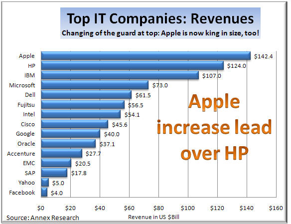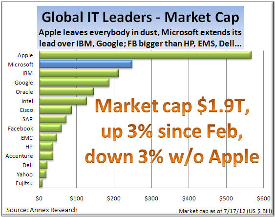 Updated 7/18/12, 8:50AM HST, adds Market UpdateAnalysis of Market & Business Performances of Top Global IT CompaniesApple Continues to DominateMicrosoft extends lead over IBM, Google; Facebook bigger than HP, EMS, Dell, Fujitsu...HAIKU, Maui, July 17, 2012 -