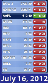 Happy bargain hunting Bob Djurdjevic HAIKU, Maui, June 18 - Forget the left brain. Emotion is everything when it comes to Wall Street. What is happening in the market today is another case in point. Intel delivered inline results. Yet it still faces significant challenges in the future (see Intel Still Has A Device Problem). Never mind. When investors want to move the market up, they will grasp at straws for a reason. Or no reason at all. As a result, the Dow is up 100 points, as are most of the top IT stocks, except for Apple!? (Go figure, right?)
