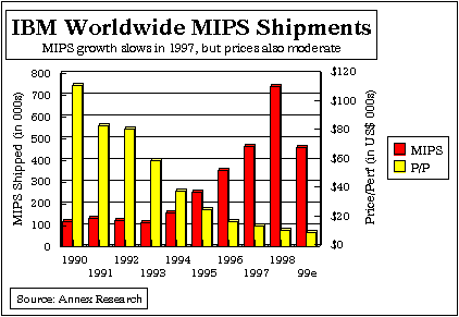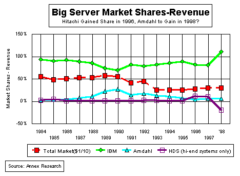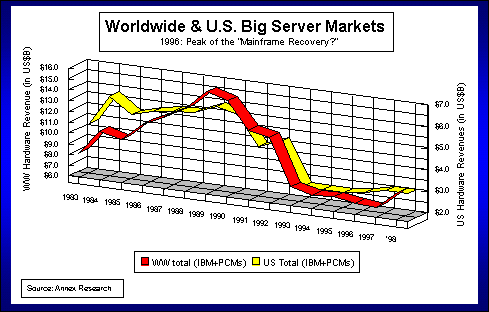 Research | Annex Bulletins | Quotes | Workshop | Feedback | Clips | Activism | Columns | HIGH-END Analysis of Mainframe Market Shares Mainframe MarketHistorical Trends (as of 1999)