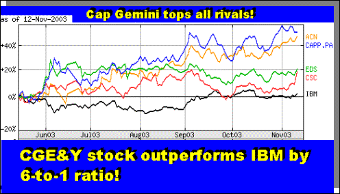 IBM The correct answer is No. 2 – CGE&Y. This Paris-based contented has outperformed IBM, for example, by a six-to-one margin! (see the chart below).