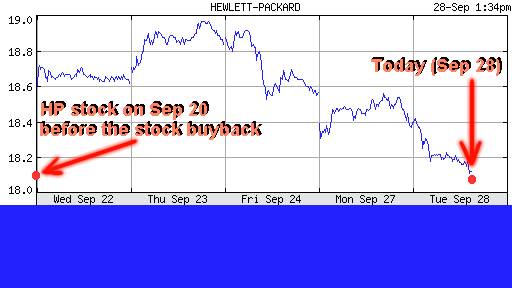 their own. Stock Buybacks The same cannot be said of stock buybacks, a practice that both HP and IBM have embraced in the last several years. To us, that’s a lose-lose proposition, in the long run. Yet, HP has just ratcheted up its stock buyback program. The company spent $2.2 billion on its own share repurchases in the fourth quarter alone. For the full year, HP bought back $3.3 billion-worth of its stock. And what does the company have to show for all this money? Not much. Take a look at the stock charts.
