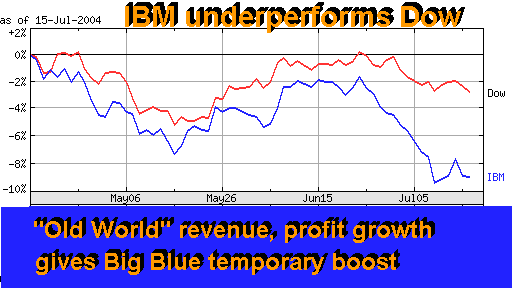 In summary, IBM’s second quarter was a very good period for Big Blue. Unfortunately, it was largely driven by a temporary resurgence in an “old world” business. When that trend blows itself out, which may well happen before the end of the year, IBM will probably return to its old anemic growth, coupled with occasional declines. Unless the company quits wasting money on stock buybacks, and adopts our “save, spend and split” recommendation, 2005 may be the first of such declining years. Happy bargain hunting! Bob Djurdjevic