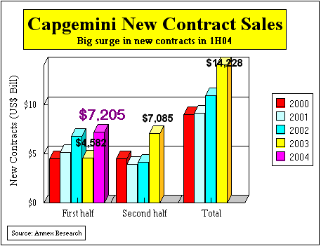 For additional Annex Research reports, check out... 2004: EDS to Cut Up to 20,000 More Jobs (Sep 2004); Capgemini Stock Plummets on Unexpected Loss (Sep 2004) HP Savaged by Wall Street (Aug 2004); Moody's Lowers the Boon on EDS (July 2004); HP: Delivering Value Horizontally (June 2004); Accenture: Revving Up a Notch (June 2004); Beware Your CFO! (May 2004); IBM: Changing of the Guard (May 2004); Capgemini: Texas-size Home Run (May 2004); Following the Money (May 2004); EDS: On a Wink and a Prayer (Apr 2004); HPS Wins by a Nose! (Octathlon 2004); Accenture: Burning the Track (Mar 2004); IGS: "Crown Jewel" Restored? (Mar 2004); HP: Still No Cigar (Feb 2004); Cap Gemini: Another, Smaller Loss (Feb 2004); CSC: Good Quarter Gets Boos (Feb 2004); EDS: "Hot Air Jordan" Flaunts Flop as Feat (Feb 2004); IT Industry: Whither Goeth It? (Jan 2004); Cronyism Is Alive and Well at EDS" (Jan 2004) 2003 Cap: Biggest Feather in Cap's Cap (Dec 2003); The 10-year Glitch (Mar 2003) A selection from prior years - Cap: Analysis of CGE&Y 2001 Results (Feb 21, 2002), Analysis of Cap Gemini Ernst & Young 2000 ... (2001), CGG 1999 Preliminary (Mar 10, 2000), CGG Annual Report 1998 (June 18, 1999), CGG: The Most Improved (1998)