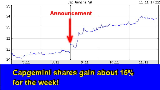 For additional Annex Research reports, check out... 2004 IT: Capgemini: Revenue, Stock Soars (Nov 2004); EDS: Jordan's Swan Song? (Nov 2004); To Russia with Love and $ (Oct 2004); IBM: Slow Quarter No Longer (Oct 2004); Accenture: Revenues, Profits Up, Stock Down (Oct 2004); Capgemini: A Takeover Target? (Oct 2004); Sellout of America (Oct 2004); Spy Wars (Sep 2004); Outsourcing Boomerang (Sep 2004); EDS to Cut Up to 20,000 More Jobs (Sep 2004); Capgemini Stock Plummets on Unexpected Loss (Sep 2004); HP Savaged by Wall Street (Aug 2004); Moody's Lowers the Boon on EDS (July 2004); HP: Delivering Value Horizontally (June 2004); Accenture: Revving Up a Notch (June 2004); Beware Your CFO! (May 2004); IBM: Changing of the Guard (May 2004); Capgemini: Texas-size Home Run (May 2004); Following the Money (May 2004); EDS: On a Wink and a Prayer (Apr 2004); HPS Wins by a Nose! (Octathlon 2004); Accenture: Burning the Track (Mar 2004); IGS: "Crown Jewel" Restored? (Mar 2004); HP: Still No Cigar (Feb 2004); Cap Gemini: Another, Smaller Loss (Feb 2004); CSC: Good Quarter Gets Boos (Feb 2004); EDS: "Hot Air Jordan" Flaunts Flop as Feat (Feb 2004); IT Industry: Whither Goeth It? (Jan 2004); Cronyism Is Alive and Well at EDS" (Jan 2004) 2003 Cap: Biggest Feather in Cap's Cap (Dec 2003); The 10-year Glitch (Mar 2003) A selection from prior years - Cap: Analysis of CGE&Y 2001 Results (Feb 21, 2002), Analysis of Cap Gemini Ernst & Young 2000 ... (2001), CGG 1999 Preliminary (Mar 10, 2000), CGG Annual Report 1998 (June 18, 1999), CGG: The Most Improved (1998)