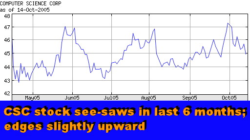 Overall, net buyers outnumbered the net sellers 10 to 5, though neither group made any big moves in the second quarter (except for the four new institutions). "Hold and wait" was evidently the preferred strategy of majority of CSC shareholders. No. 20 Merrill Lynch and No. 21 Harris were the only detractors that reduced their CSC holdings by 25% or more (Annex clients can see the CSC table for details). The CSC stock price matched the mostly flat trading pattern of its major institutional holders in the last six months. It see-sawed in a narrow price range, edging slightly upward, though October has not been kind to it.
