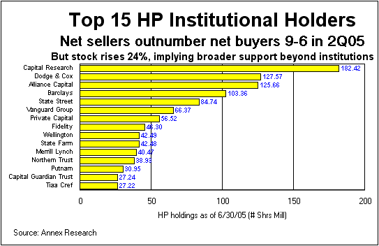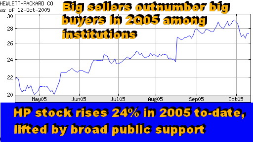 Based on the 24% price hike alone, common sense and logic would suggest that there were more buyers than sellers among the top institutional holders of HP stock. Think again. Common sense and logic don't always work on Wall Street. Net sellers outnumbered net buyers 9-to-6 among the top 15 HP institutional owners.