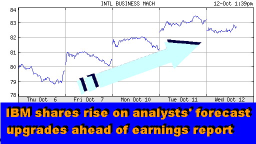 Thus it can be said that there has been a changing of the guard among the top IBM institutional shareholders. The biggest are still the biggest, mind you. They did not sell all of their shares in the second quarter. But they are certainly bruised and a little battered. And the smiles are on the faces of newcomers, as the whole market gets poised for the usual big fourth quarter and the year-end surge. The first such upswing in IBM shares is already discernible this week after several Wall Street analysts upgraded their forecasts ahead of next week's (Oct 17) IBM's third quarter earnings release (see the chart). Some media reports, emboldened by Accenture's stellar earnings results last week, also helped push IBM and other IT shares higher (see "Accenture earnings bode well for IBM," Reuters, Oct 7, 2005). But the fact that IBM will get the full benefit of its new "z9" mainframe's volume shipments in the fourth quarter ought to be the most encouraging factor of all (see "IBM: Polaris Eclipses T-Rex," July 2005, and "IBM starts shipping latest mainframe," Reuters, Sep 16, 2005).
