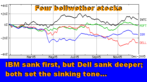 On the general economic front, the top story of 2005 was the record U.S. trade deficit. It rose unexpectedly rose to an all-time high in October, as oil shipments soared and the United States set deficit records with China, Europe, Canada and Mexico, according to a Dec 14 Commerce Department report, the latest available.