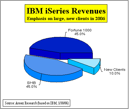 than 100 employees average more than 20 That's why the iSeries message about its simplicity resonates well with a wide range of customers. "I like to think of the iSeries as 'IBM in a box'," said Shearer during the teleconference. Solid 2005 Results The preceding positions the iSeries well for a continuation of the renewal that we predicted in the first quarter of last year (see "An iSeries Renewal" whitepaper, Mar 2005). "We are right at the center where IBM believes the systems are going," Shearer said, referring to IBM's Systems Agenda (see "Hardware Revival," Nov 2005). The 2005 results proved that.