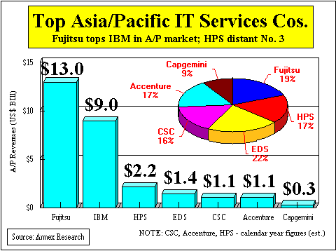 In the Asia/Pacific market, Fujitsu and EDS lost share, while rest of the competitors gained share ranging from 0.2% to 1.4% (see the chart).