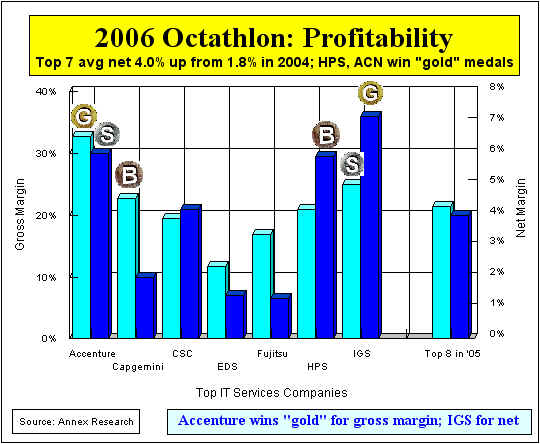 The net margin “gold” again went to IGS this year, while Accenture and HPS claimed the “silver” and the “bronze” respectively.