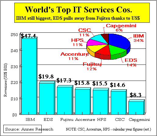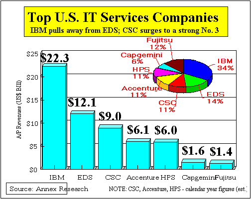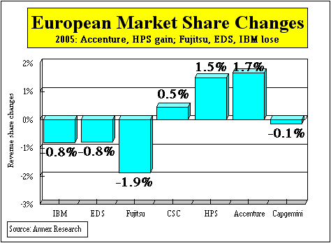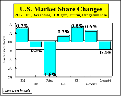 In the U.S. market, HP, IBM, Accenture and CSC gained share, while EDS, Fujitsu and Capgemini lost it.