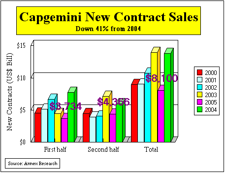may not do much for the bottom line. Given that the price competition is moderating across the board, an opinion that Accenture also voice back in January, chances are that the profitability may also continue to improve. An 80% increase in Capgemini's work force deployment in lower labor cost countries, such as India, China and Poland, should help the bottom line. Overall, therefore, there is good reason for optimism in 2006.