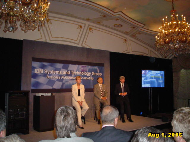 Bill Zeitler, Hector Ruiz, Susan Whitney (from right to left) in New York City But the biggest industry news to emerge from the August 1 IBM/AMD media bash at the St. Regis hotel in New York (see above photo) came during the Q&A session. Asked to explain why AMD decided to invest several billion dollars ($5.2 billion to be exact - see Note 1) to build a new semiconductor plant in New York, at a time when its competitors, like Intel, Motorola, Boeing etc. are moving to India or Russia (see "Go East, Young Man!" and "A Tale of Two Blues"), Hector Ruiz, AMD's CEO, replied that it was because of the outstanding quality of the local IT talent. "Human