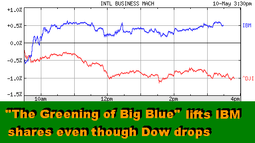 Blue is going green on the back of a $1 "Today, we are providing clients the IBM action plan to make their datacenters fully mobilized and energy efficient," said Mike Daniels, senior vice president who runs the company's largest unit, the $34 billion-Global Technology Services, in a release. IBM itself expects to double its enormous computing capacity (over eight million square feet of datacenters) within the next three years without increasing the power consumption or its carbon emissions. The company hopes to save more than five billion kilowatt hours of energy per year as a result, or about $500 million in costs. That's enough electricity to heat about 370,000 homes for a winter, IBM said. Al Gore would be pleased with the greening of Big Blue (see "An Inconvenient Truth," a documentary on dangers of global warming), especially if IBM efforts result in a global warming of its customers to the energy-saving ideas. The cost and availability of electrical power is becoming a critical issue for many companies whose data centers have expanded steadily. IBM formed an “information technology optimization” task force at the start of the year. The "green team" initiative currently includes over 850 "energy efficiency architects" in various IBM units around the world. "We decided it was critical to mobilize the full resources of the company to attack the problem," Bill Zeitler, IBM's top hardware executive told the New York Times. "This is approaching a crisis for many of our clients." The issue of energy efficiency is still relatively low on the list of procurement priorities of most IT customers. But IBM and others in the technology field and government are trying to raise the awareness and its importance. The Green Grid, an industry group, for example, was created last year to work on energy consumption standards for equipment in data centers. Its members include IBM, HP, Dell, Sun Microsystems, Intel, AMD, VMWare and others. And last December, Congress passed legislation authorizing the Environmental Protection Agency to study energy use in datacenters, and to develop an Energy Star rating system for data center server computers, as it already has for personal computers. Happy bargain hunting! Bob Djurdjevic IBM: "It's an End to End" Process Benefit of "The Greening of Big Blue:" Equivalent of 3.7 Million Cars Being Removed from Nation's Highways NEW YORK, May 10 - "We