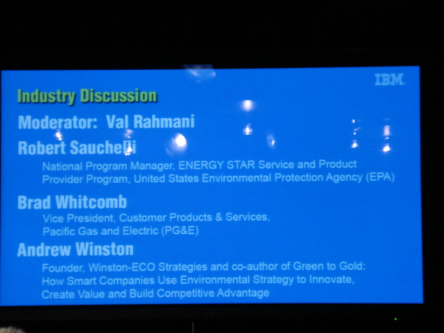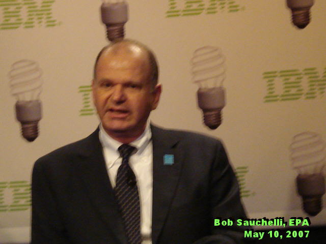 The EPA's Energy Star program (see logo), that Sauchelli heads, which includes some 5,000 American companies, including most of the IT giants, saved the nation 170 billion kilowatt hours in 2006. That's equivalent of removing 25 million gas polluting cars from the road. It also saved the industry $14 billion in energy costs. IBM's Daniels also said that IBM owns and operates 8 million square feet of datacenter space. Due to the "Project Big Green," the company will not have to expand it in order to double its capacity. This cost avoidance will result in a 5 billion kilowatt hours of direct savings. That's equivalent of removing 735,000 gas guzzlers from the nation's highways, according to the EPA statistics.
