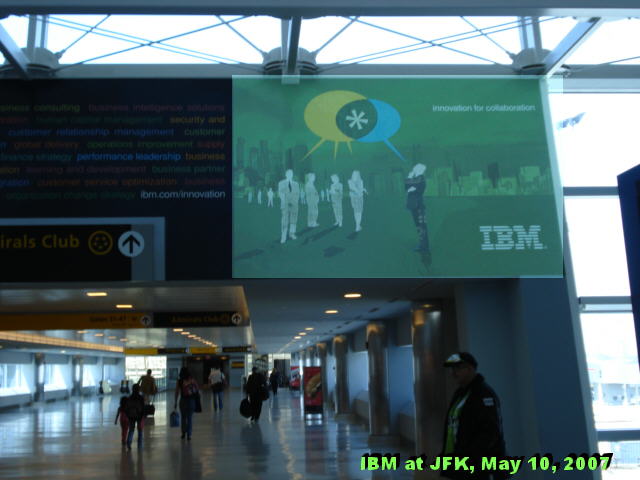 Val Rahmani (right) Mike Daniels (left); Bill Zeitler (middle and right) The panel (left), hosted by Rahmani. Participants are identified on the middle slide. IBM panel (right). Participating IBM partners' logos (left); attentive audience at the press conference (middle); billboard at the airport already attesting as to Big Blue's greenness (right). The Power of Green: IBM Launches Power6 Chip, Leapfrogs ItselfSCOTTSDALE, May 21 - Can you imagine downloading five
