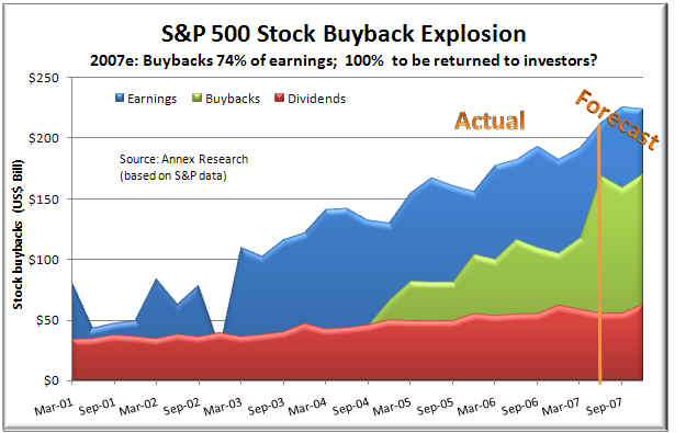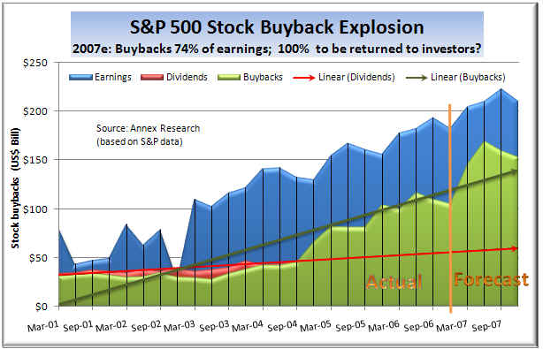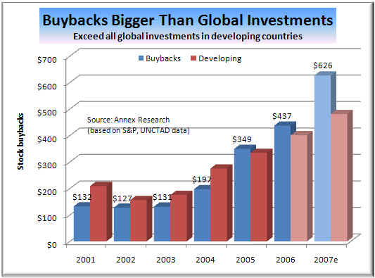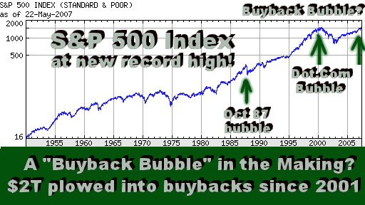 Updated 6/18/07, 1:40PM PDT, adds MARKET UPDATE: Record 1st Quarter...Analysis of Stock Buyback Trends in Corporate AmericaAre We in "Buyback Bubble?" S&P 500 Companies Flooding the Market, Turning Nearly All Their Earnings to Wall Street$2 Trillion+ of New Buybacks Hit the Street since 2001