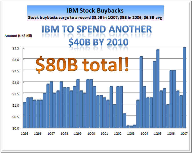 Are We in "Buyback Bubble?" - Analysis of corporate stock buyback trends BRIC by BRIC... to Top Line Growth - Echoes from IBM meeting for fin analysts [Annex clients click here] |