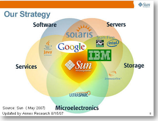 casting an ever longer shadow on the IT industry, striking first a deal wi The deal appears good for Sun and even better for IBM. Sun will get additional software revenues. IBM will gain because the Solaris ecosystem will help boost the already strong demand for IBM mainframes and the System x.