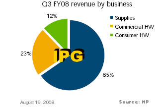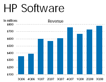 This time, however, HP got a little help from the weak dollar. With 68% of its business coming from outside the U.S., the company had strong financial tailwinds in both Europe (11% boost) and Asia/Pacific (6% boost). But even in constant currency, HP managed to grow its business in all three major geographies (up 3% in the Americas, up 5% in Europe and up 8% in A/P). Furthermore, revenues from emerging markets, such as the so-called “BRIC countries” (Brazil, Russia, India and China) grew 24% over the prior-year period and accounted for 10% of total revenue. Cathie Lesjak, HP's CFO, said the company had a triple digit growth in Russia. HP is an important supplier to the country's burgeoning energy sector, among others.
