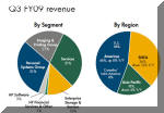 profit in Services, double-digit revenue growth in Hm... If you take the reported numbers for HPS and EDS for the third HP fiscal quarter of 2008, the combined HPS/EDS revenues were $9.9 billion (see from the detailed HPS Table - for Annex clients only, User ID & Password required). The just-reported corresponding 2009 figure was $8.47 billion. That’s about a 15% DROP (!) in revenues for the third quarter, not a 93% revenue jump.