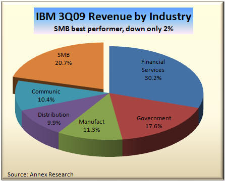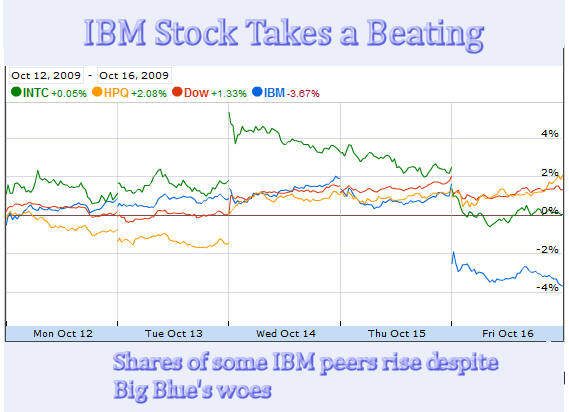 Updated 10/16/09, 12:00PM HITAnalysis of IBM's Third Quarter Business ResultsIBM Stock Takes a Beating... Despite Better-than-expected Quarterly Results; When Reason Takes a Holiday on Wall StreetHAIKU, Maui, Oct 16 – IBM stock took a beating today, dropping over six points or five percent to close at $121.30. When the company released its third quarter results last night, both earnings and revenues were better-than-expected. Free cash flow set a new record. Revenues increased sequentially. The IBM CFO said in a conference with analysts that revenues would actually grow year-over-year in the fourth quarter as well. As a result, Big Blue raised its full year earnings-per-share forecast from $9.70 to $9.85. No wonder most headlines lauded the IBM results (see below).