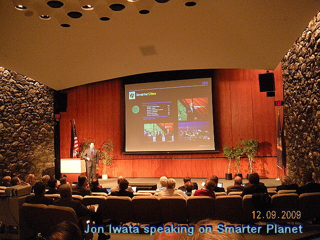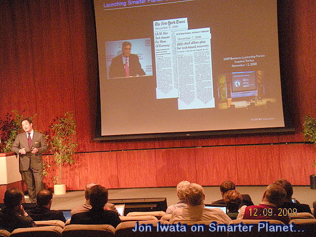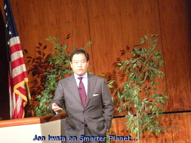 cost of all those huge bailouts? They are just one example of govern And the way toward a "smarter planet" is paved with smarter use of existing date and systems. "It's about a system of systems," opined Ginni Rometty, the head of IBM global sales, who was in charge of IBM's Global Business Solutions unit until about a year ago. Rometty is shown in the left photo along with Iwata. They were answering questions from the audience during a Q&A that followed Iwata's "smarter planet" presentation. Holistic Approach to Business: "Smarter Solutions"The same idea - using a "system of systems" to back up intelligent decisions - is what sets IBM apart from the competition. While most other companies try to fix and improve what's broken here and there within a given system, Big Blue uses what we called "a holistic approach" to problem solving (see IBM's Holistic Approach, Feb 2009):