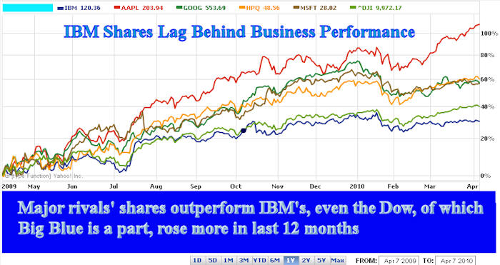 got from their company's business performance in the last two Yes, the Big Blue stock has been all over the map in the meantime. And probably will be again in the future. As we've said many times in the past, sometimes we have to look at Wall Street charts upside-down to see which end is up in the IT industry. IBM finished 2008, for