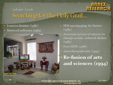 Updated 4/18/10, 8:45AM HIT, adds "Laptops & Travel Vignettes"MacGoogle Only Slightly Better than WintelIT User: Between Rock and Hard PlaceFor Decades, Computer Vendors Have Been Promising Ease of Use While Delivering More Complexity; Google Apps Offers Ray of HopeHAIKU, Maui, Apr 17 – For decades, computer vendors have been promising ease of use while delivering more complexity. Which was enough to drive any creative person or a small businessman right up the wall and down the chimney. "It takes three PhD's and a mule to install it," an IBM business partner from the Bay Area (San Francisco) told us in June 2007. He was referring to a supposedly "easy to use" application intended for small and medium size businesses. Nor are consumer-level products much more "user friendly." In an effort to try to get away from Microsoft Windows environment, this writer has recently acquired an Apple MacBook Pro notebook and signed up for Google Apps. Apple, Google... two companies synonymous with success in consumer markets. So you'd think that a "MacGoogle" solution would be really easy to use and user friendly. Well, think again. If it took three PhD's and a mule to install that IBM piece of software, even six Nobel laureates and a camel train could not make Google Apps work in sync with Microsoft Outlook. After a month of utter frustration and countless hours wasted on techie issues, this writer finally had to appeal for assistance to Eric Schmidt, the Google CEO. The practically non-existent Google personal support did come through after that. But the bottom line was that some Outlook features just don't work in Google Apps. Period. Square peg in a round hole. The sad part it is that it took six weeks for this Google customer to discover it. That's how "good" Google technical support is. Every question this writer posed was answered with more questions and demands for more tests. In the end, we basically figured out what was going on on our own. Google techies just agreed with the conclusions we had reached. By "we," I mean this writer - a non-techie who gets sucked into IT problem-solving only under protest and out of necessity. Still, now we know what Google Apps can and cannot do, we still plan to use it. Why? Because if a customer can have his applications and personal data available anywhere around the world where there is a web connection, he would not need to lug a laptop anymore, would he? Not even a good one, such as an Apple MacBook Pro (see "MacBook Pro Arrives at 'Rainbow Shower'," Feb 25). Demise of New and Old Laptops There is no question that the MacBook Pro has been a marked improvement in stability compared to a virtually brand new top-of-the-line HP notebook running the latest version of Windows 7. In the end, this writer has decided to chuck even such a new product after the disastrous experiences last December (see Broken Windows, Broken Promises, Dec 2009). The decision to finally jump the Windows ship was reinforced when even the old backup Toshiba laptop failed at the start of a trip to Peru in late January (see "Laptop R.I.P.," Jan 22). That five-year old died an unusually violent death. Once it was pronounced brain-dead by a local Toshiba technician, I did not want to lug the carcass the rest of the trip, up and down the Andean mountains, like some sort of ballast. It's hard enough carrying your own weight at 14,000 ft and higher elevations. Which meant I had to physically destroy the laptop, lest some clever Lima nerd decided to revive the still functioning hard disk with all our data on it. As you can see, the laptop execution took place in a Lima hotel room. In the end, the only blood spilled was my own. A sharp piece of wire cut my forearm while I was breaking the laptop in two. Oh, well... it was self-defense. I understand. I wasn't angry. I would have done the same thing if someone did to me what I had done to that computer. After the execution, I disposed of the Toshiba body parts in two separate Lima street trash bins. It was after midnight. And I made sure that no one was watching. "They don't make them anymore like they used to," I told Elizabeth when I came back to our hotel room. "I used to be able to keep my old laptops for backup for 10 years or longer. This one, however, barely made it past its fifth birthday." Oh well... "so it goes," as Kurt Vonnegut used to say every time someone died in his masterpiece "Slaughterhouse Five." What's to Be Done? So what's to be done? Should everybody start switching from Windows to Mac's and Google Apps? Not necessarily. There is another alternative. Smell the roses. Reassess if technology is really enhancing your quality of life. What if you "just said no," as the society urges the drug addicts to do? I am not saying it would be my choice. You saw from the foregoing that it was not. But it is a choice. For tens of thousands of years of human history, Homo Sapiens managed to get by without a laptop. If he wanted to put something on his lap, it would be usually a loved one, not an inanimate battery-powered leg warmer. Our happiness did not depend on technology. Nor did our unhappiness. How can you be unhappy about not having something you've never heard of? Only thirty years ago, there were no PCs to speak of. Apple and other "micro" vendors were serving merely a "hobby market." In other words, they were not a part of life's or business mainstream. I tried an Apple II in 1981. It was terrible. So I chucked it. Went back to my pen, paper and calculator. An executive secretary was my Microsoft Office 1981. She was much more fun. And infinitely better looking. In 1983, I did get my first PC. I used it to connect to Newsnet, a precursor of the Internet 10 years earlier. That's where we published some of our early Annex Bulletins (see "Go West, Young Man", Nov 1983). In 1986, I got my first laptop. It was a Toshiba. Two 3.5" floppy disk drives. In early 1987, I used it to publish our first Annex Bulletin from overseas - Helsink