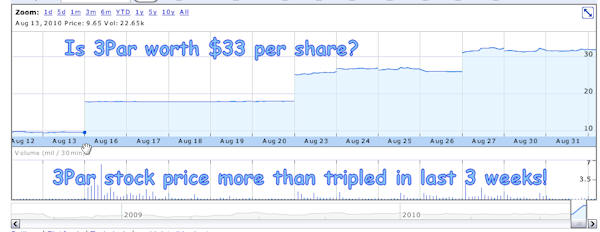And so on, and so forth... fun with numbers, huh? Or is there more to it than just fun? Headless = Reckless? Back to the world of reason and investments, what to you think: Is 3Par worth today more than three times that it was three weeks ago? Common sense would suggest - no.