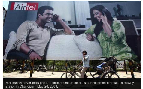 India – from six million subscribers in 2004, to more than 140 million t IBM and Bharti have not disclosed the value of the new deal. But some reports in the Indian press suggest the 10-year contract will be worth at least $1.5 billion (see The Economic Times of India, Sep 18). Bharti Airtel plans to replicate the success of its relationship with IBM by lowering the barrier to entry for the people of Africa to own a mobile device, like that rickshaw driver pedaling under a giant poster in India (above right). Bharti has a goal of bringing affordable mobile services to remote locations in Africa. IBM's voice-enabled Internet technology can help such a vision come true. It is particularly compelling for populations with little or no literacy, visual impairments, or with lack access to PCs. The technology allows users to access and share information simply by talking over an existing telephone. A Win-Win Deal for IBM, Bharti Bharti has recently expanded into Africa with the $10.7 billion-acquisition of Zain, a leading African telco. IBM has been in Africa for over 50 years, and has invested over $300 million so far in that market. Under the new agreement, IBM will be laying the groundwork for all of the underlying technologies that power Bharti Airtel’s mobile communications network spanning 16 African countries. As part of Big Blue's long range plan, the percentage of IBM’s revenue to come emerging markets, such as Africa, is expected to increase from 19% to 25% by 2015. That's equivalent of adding $1 billion per year in incremental revenues. The Bharti deal will go a long way toward making that goal plausible. IBM edged out HP in a close fight to win the new Bharti deal. Accenture, Wipro and Tech Mahindra, also made it into the initial shortlist, but did not make the cut, according to reports from the Indian press. "This will be the first of the many strategic partnerships in Africa," said Manoj Kohli, chief executive of Bharti’s international operations told the ETI. "In the next quarter, there will be many more exciting announcements of partnerships we will have in Africa. These partnerships will help us replicate the magic we have created in India," Kohli said. Key to Deal: NOT to Be Pioneer! You know what key is to these kinds of pioneering deals? The key is NOT to be a pioneer. It takes hundreds of big firms to build a national infrastructure. And they all must wash ashore more or less at the same time. Otherwise, there may be shortage of this or that material or service. What happened in China is an example of it. China would never have become the "world's factory" had not so many of the western technologies and services been transferred there at about the same time (early 1990s). And if that's a key to building national economic framework, you can imagine how much more important it is for a continental infrastructure, such as in Africa. Nevertheless, IBM and Bharti should be commended for their courage to be among the first to take a leap. Another underlying motivation for being among the first is CHEAPER labor in Africa (as it once was in China, and later in India, the Philippines and in Eastern Europe). So a legitimate question to be asked is - Is Africa (going to be) another India, China? And the answer is, "you betcha." It's just a matter of time. And education. Massive education of its work force. So cheaper labor will be a very long term benefit. But then, IBM has demonstrated lately that it thinks and acts based on a long-range vision. So Big Blue and Bharti are broadcasting a new message "out of Africa": "Come hither!" The "Black Continent" is the biggest "white space" left in the world. Now we have to wait and see how many other major multinationals will follow.